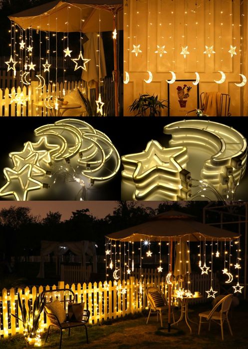 novogodnyaya girlyanda shtora bahroma zvyozdy i luna s videoobzorom za 399 grn